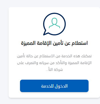 - اضغط على خدمة الاستعلام عن خدمة تأمين الإقامة المميزة.