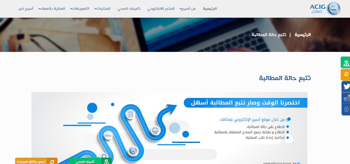 أسيج استعلام عن مطالبة التأمين الشامل والتأمين ضد الغير acig.com.sa
