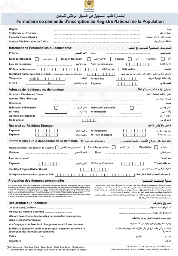 تحميل استمارة طلب التسجيل في السجل الوطني للسكان وطريقة تقديم طلب تسجيل