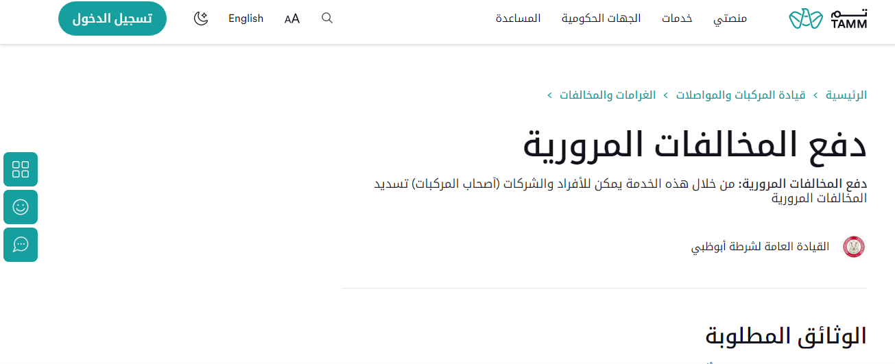 - انتقل إلى صفحة دفع المخالفات المرورية.