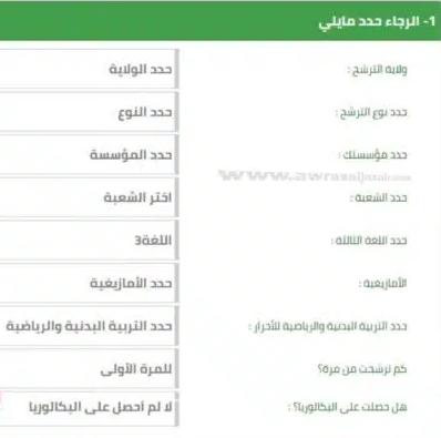 - ملء البيانات الشخصية من الاسم وتاريخ الميلاد ومحل الميلاد والإقامة ورقم الهاتف وعنوان البريد.