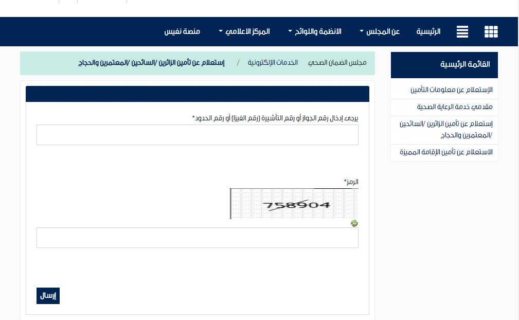 برقم الجواز أو التأشيرة أو الحدود الاستعلام عن تامين زائر 2024 مجلس الضمان الصحي