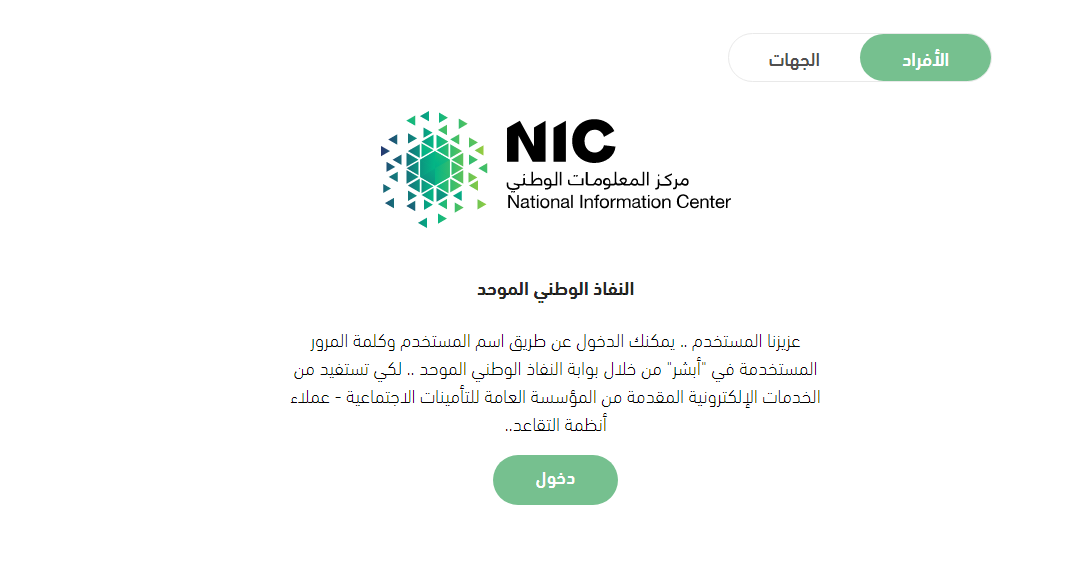 - هنا يجب عليك تسجيل الدخول عبر منصة النفاذ الوطني الموحد.
