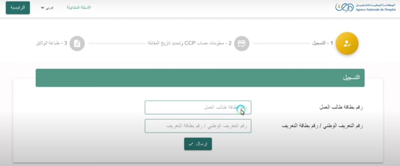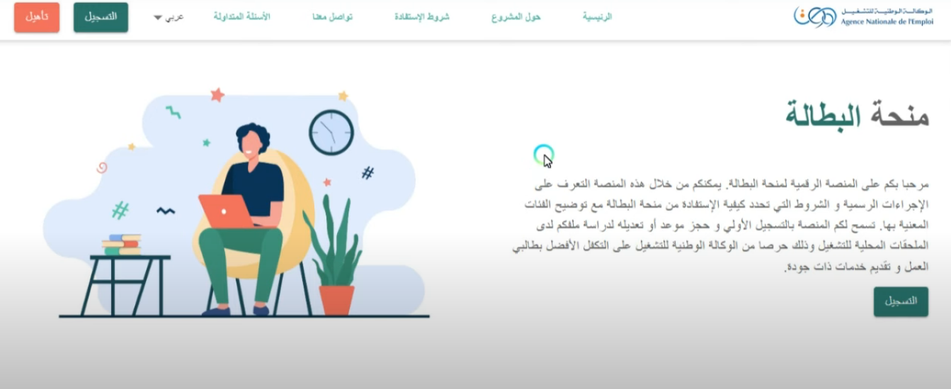 - قم بزيارة منصة الوكالة الوطنية للشغيل.