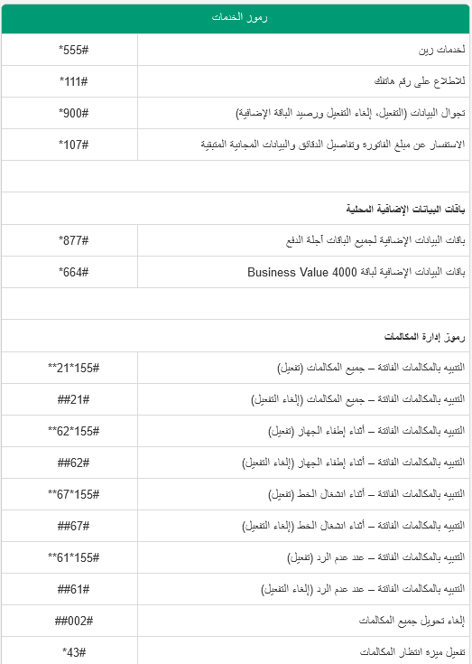 أكواد خدمات زين السعودية