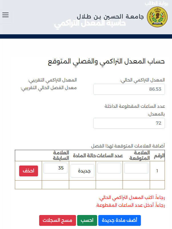 جامعة الحسين بن طلال حساب المعدل التراكمي بالخطوات