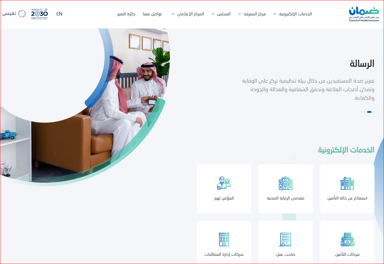 - قم بالذهاب إلى الموقع الرسمي الخاص بـ "مجلس الضمان الصحي".