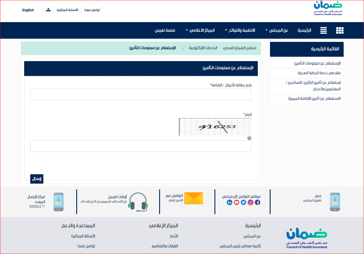 1ـ الاستعلام عن التأمين الصحي للوافدين عبر رقم الإقامة