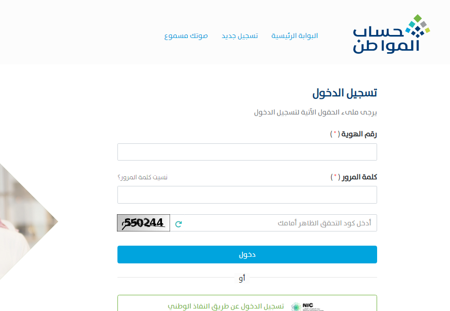 - اكتب بيانات الدخول (رقم الهوية، وكلمة المرور، ورمز التحقق).