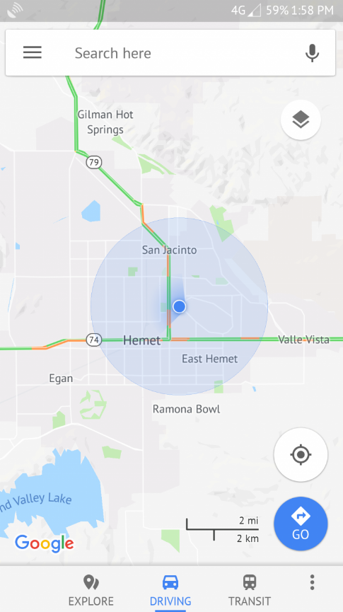 - سيتم حينها ظهور الموقع الحالي على هيئة نقطة زرقاء، فقط بالضغط عليها.