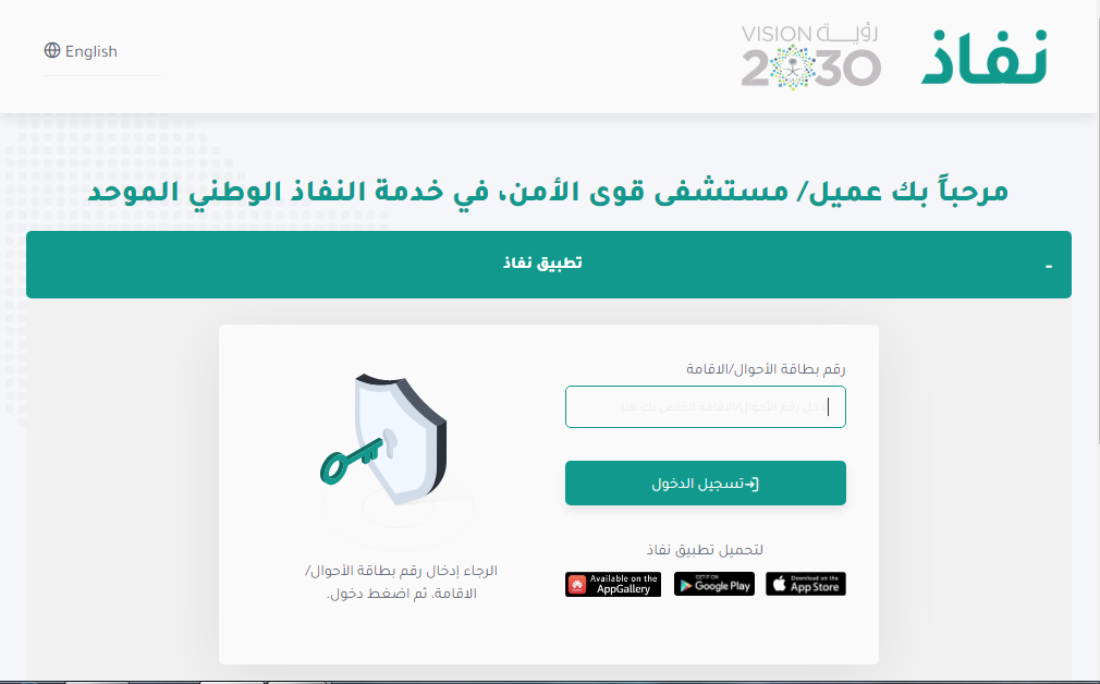 - قم بتسجيل الدخول عن طريق إدخال اسم المستخدم ورقم المرور المسجلين في منصة النفاذ لوطني الموحد.