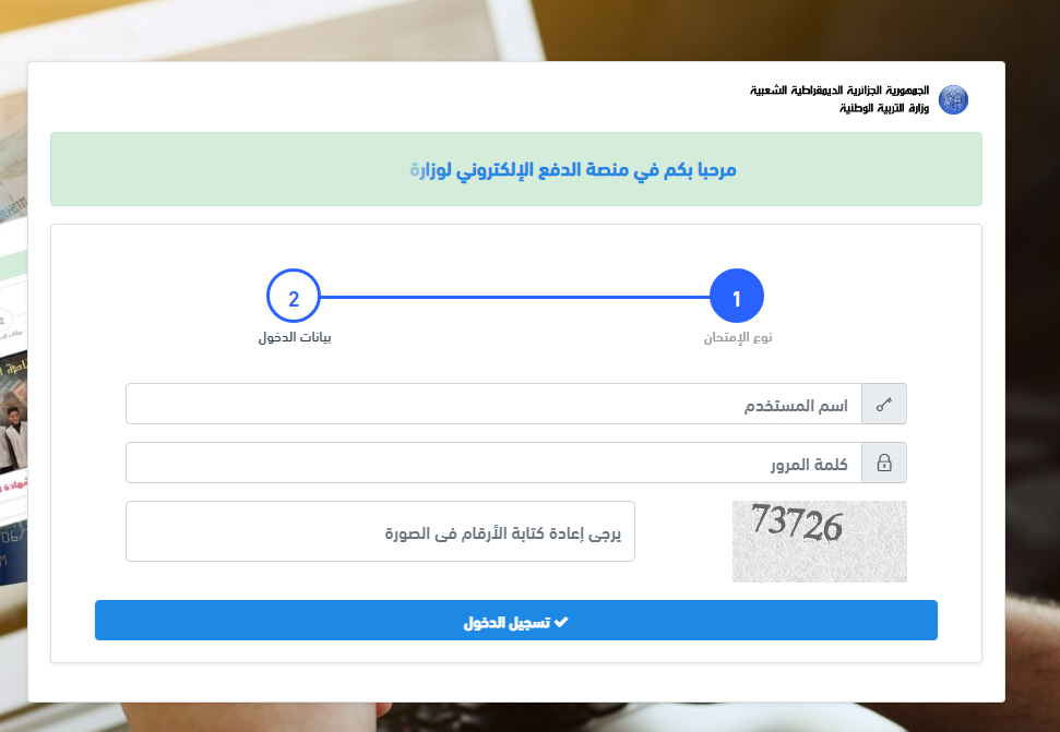 - الولوج إلى منصة الدفع وهي وزارة التربية الوطنية الجزائرية.