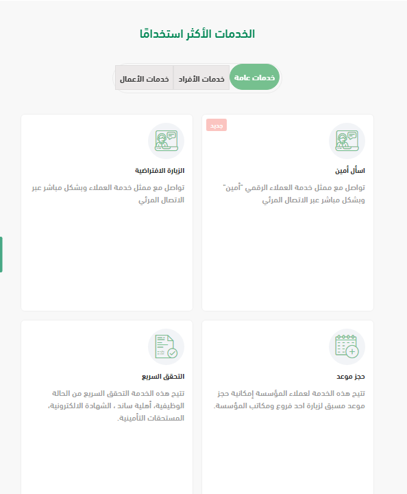 - يتم الانتقال من أيقونة التأمينات أون لاين الموجود في قائمة الخيارات.