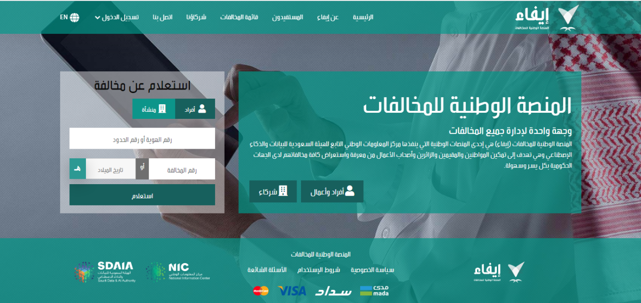 - يقوم الموقع بعرض بيانات المخالفة ومعرفة التفاصيل.