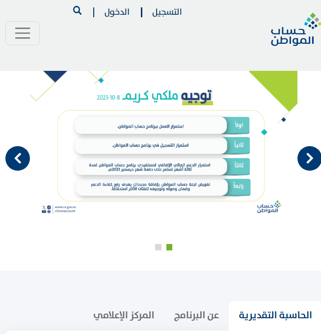 - التوجه إلى موقع حساب المواطن عبر الإنترنت.
