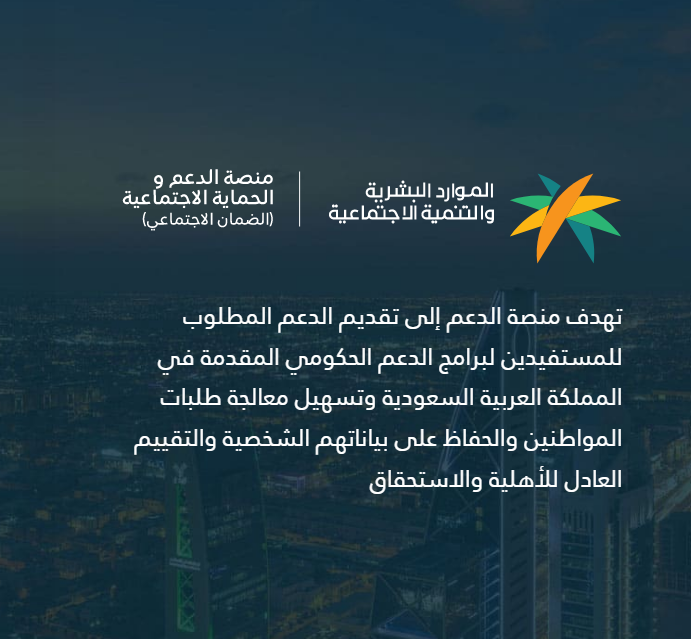 - الدخول إلى الموقع الإلكتروني الخاصة بمنصة الدعم والحماية الاجتماعية.