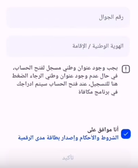 - اضغط موافق على الشروط بعد الاطلاع عليها.