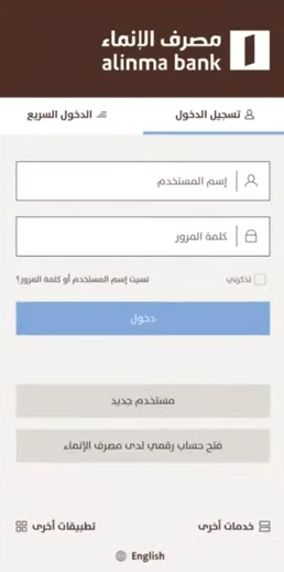 - قم بفتح التطبيق إنماء للأندرويد أو للآيفون أو زر إنترنت إنماء.