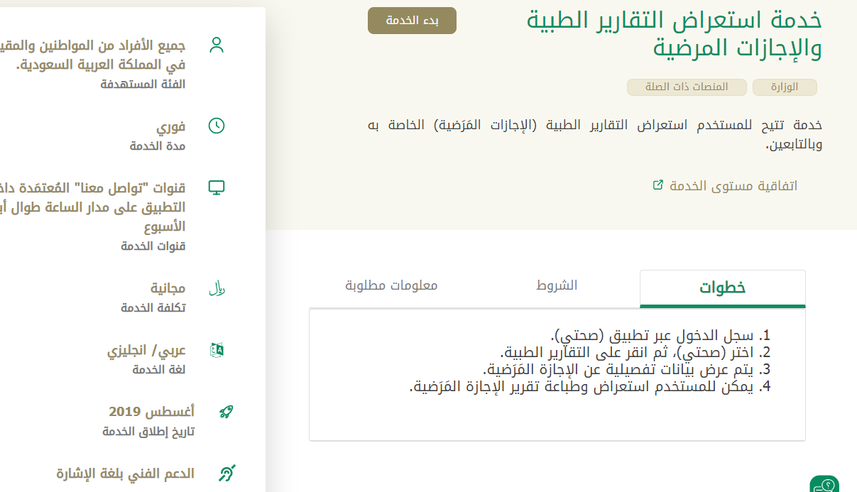شروط الإجازة المرضية من منصة صحة السعودية