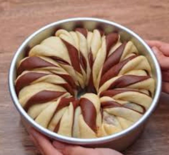 - ثم تقسيم العجين إلى قسمين، القسم الأول يتم وضعه في وعاء أخر مع الزبدة وخلطهم جيدًا، وترك العجين حتى يخمر، والثاني بالمثل.