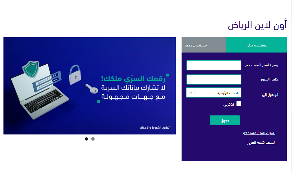 - يتم تسجيل الدخول من خلال إدخال اسم المستخدم وكلمة المرور.