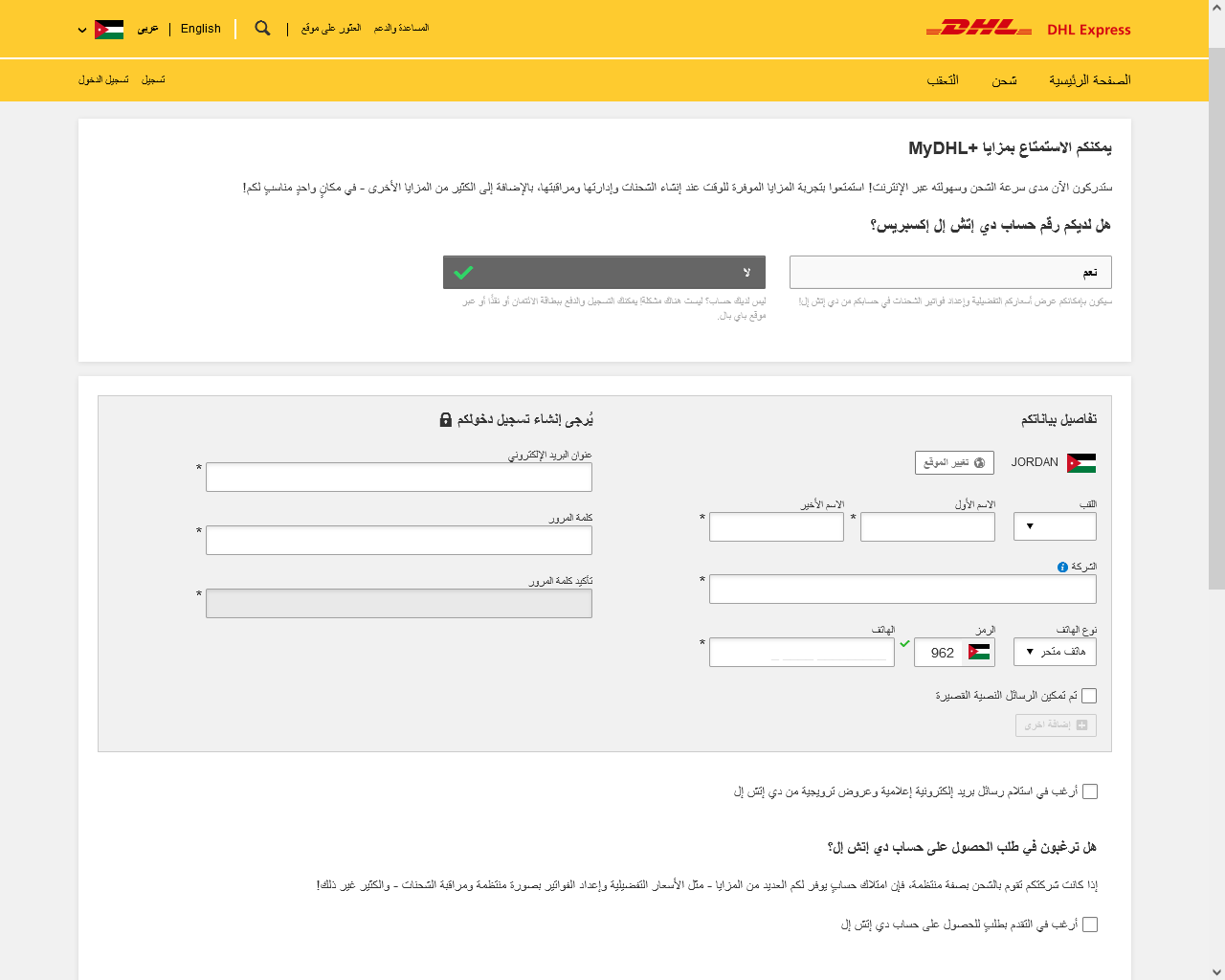 - إن لم يكن لك حساب قم بالدخول على منصة شركة DHL.