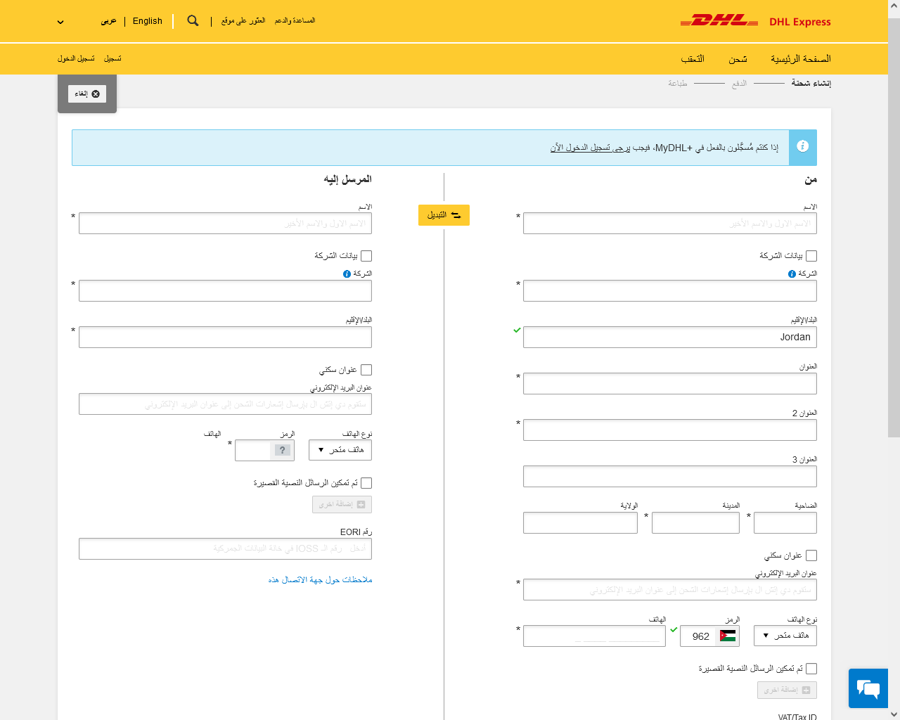 كيف اشحن عن طريق DHL؟