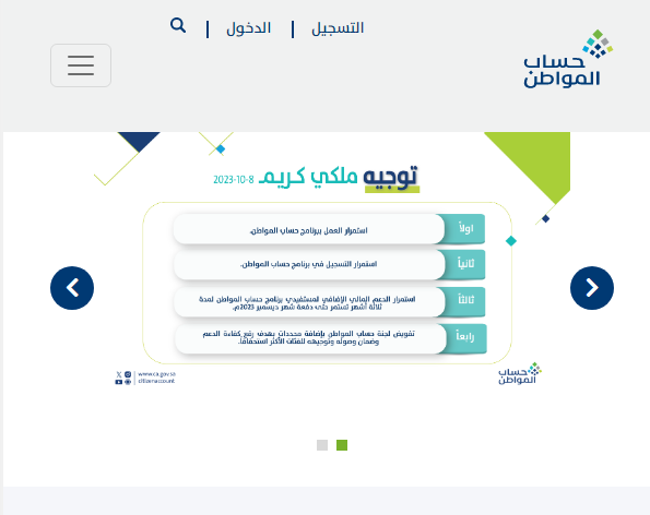 - قم بالدخول بشكل مباشر إلى الصفحة الرسمية لبرنامج حساب المواطن "من هنا".
