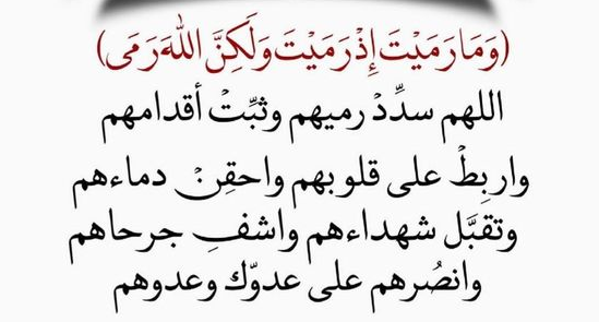 - اللهم انصر إخواننا المجاهدين في أرض غزة المحتلة، وأيدهم بقوتك وعزتك على الأعداء.