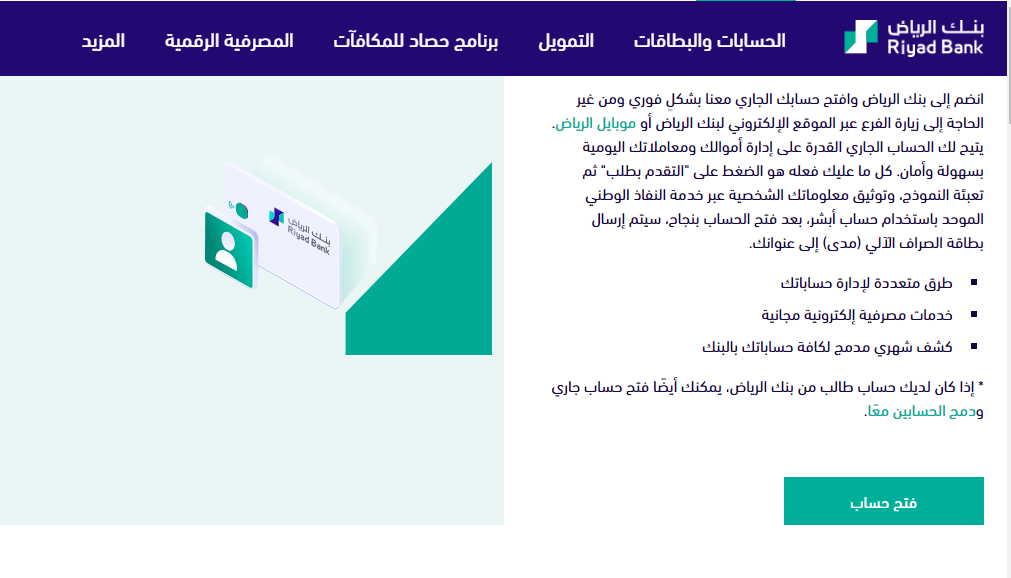 هناك بعض الخطوات التي يجب اتباعها من أجل فتح حساب في بنك الرياض، حيث يتم هذا على الموقع الرسمي للبنك من خلال اتباع الخطوات الآتية: