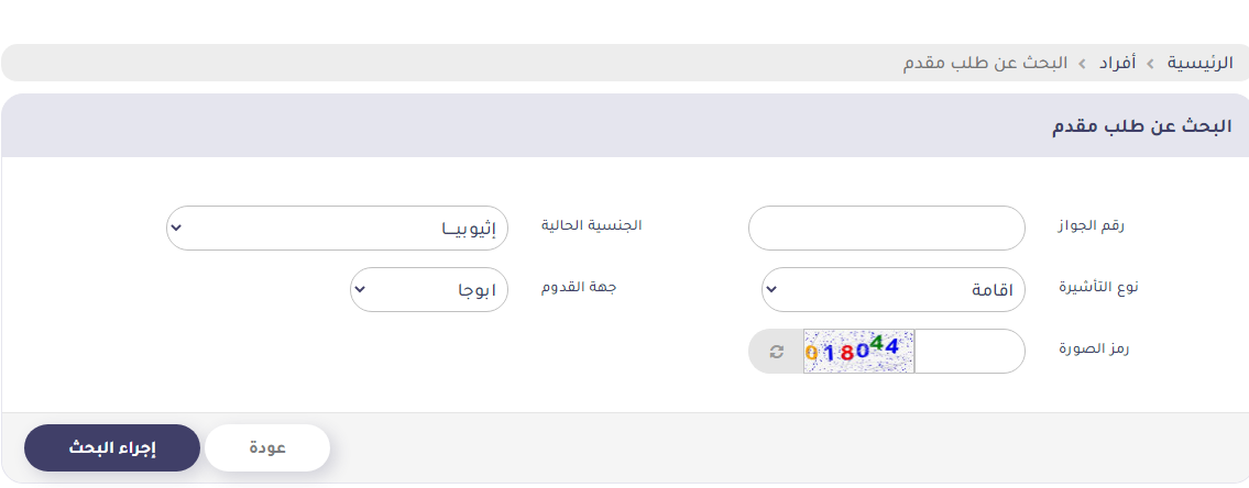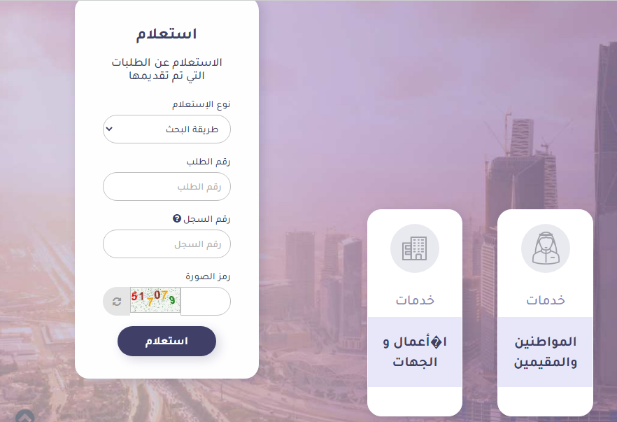 - اكتب بيانات الاستعلام (رقم الطلب، ورقم السجل، ورمز الصورة).