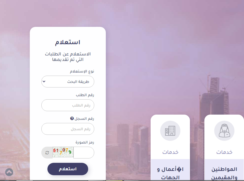 - املأ بيانات الاستعلام رقم الطلب، ورقم السجل.
