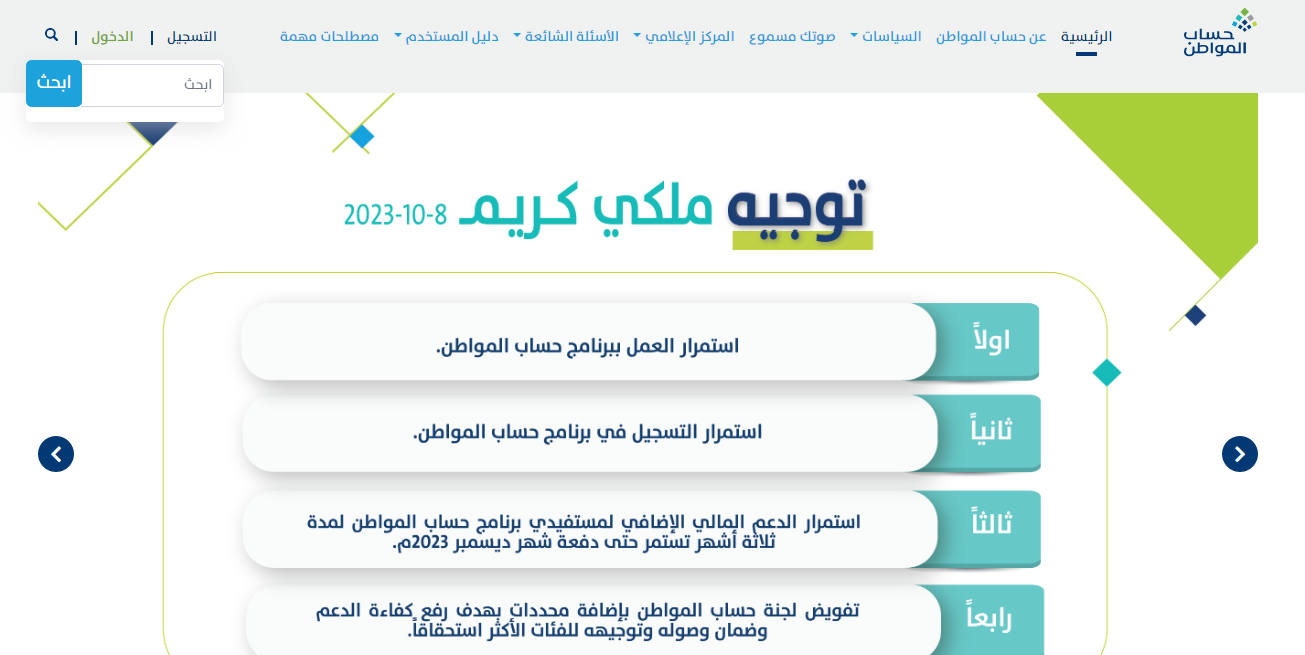 - الذهاب إلى منصة برنامج حساب المواطن.