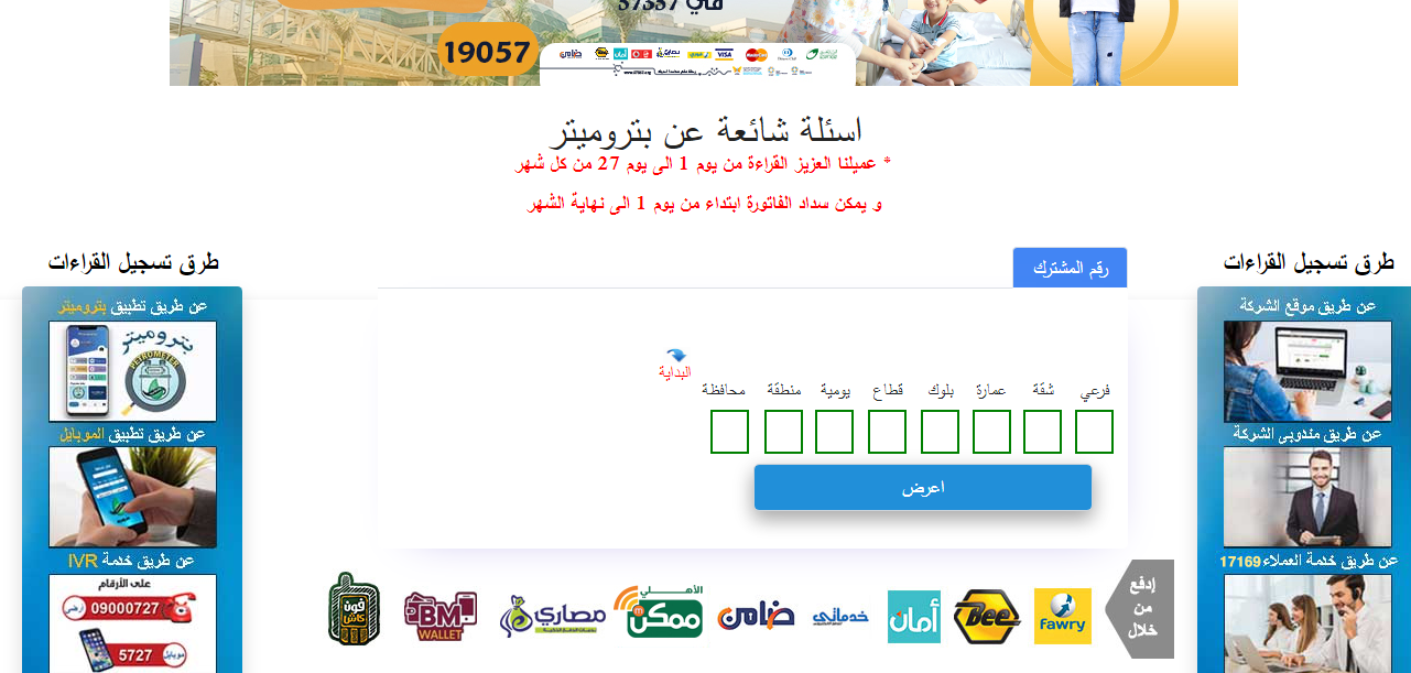 - يُرجى تسجيل القراءة عبر الموقع من يوم1 إلى يوم 15 من كل شهر.