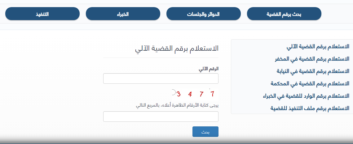 - املأ بيانات الاستعلام (الرقم الآلي للقضية، ورمز الصورة).