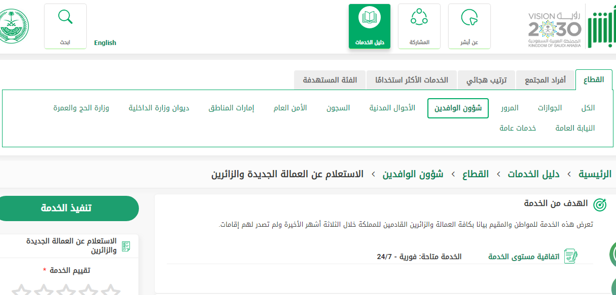 الاستعلام عن عدد العمالة برقم هوية الكفيل
