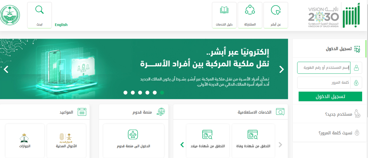 - الولوج إلى الموقع الرسمي لمنصة أبشر.