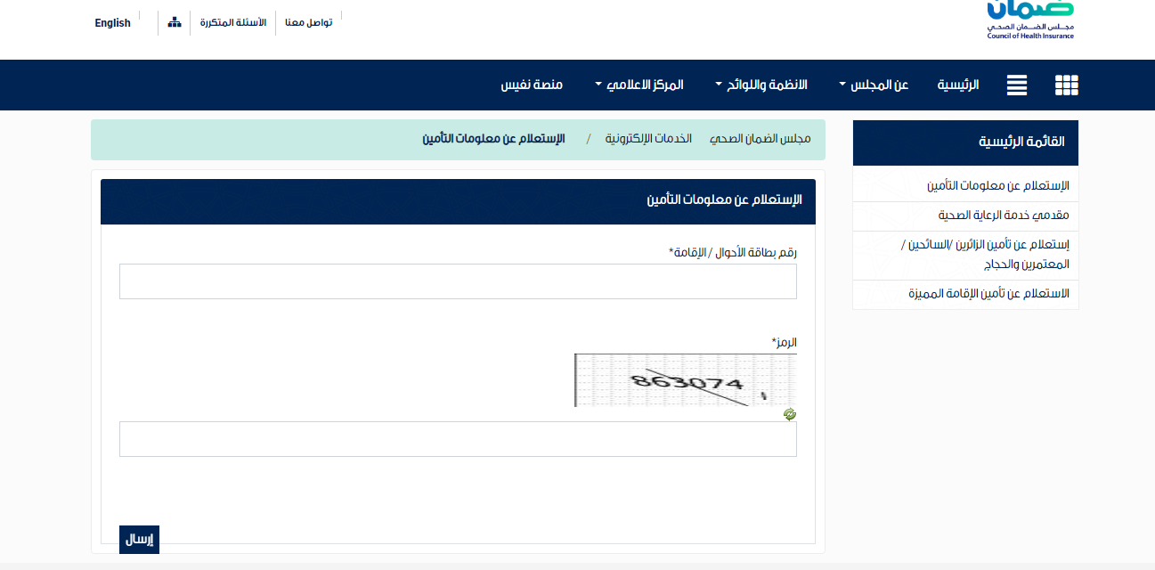 - تحديد تبويب "استعلام عن حالة التأمين" من بين الخدمات المتاحة.