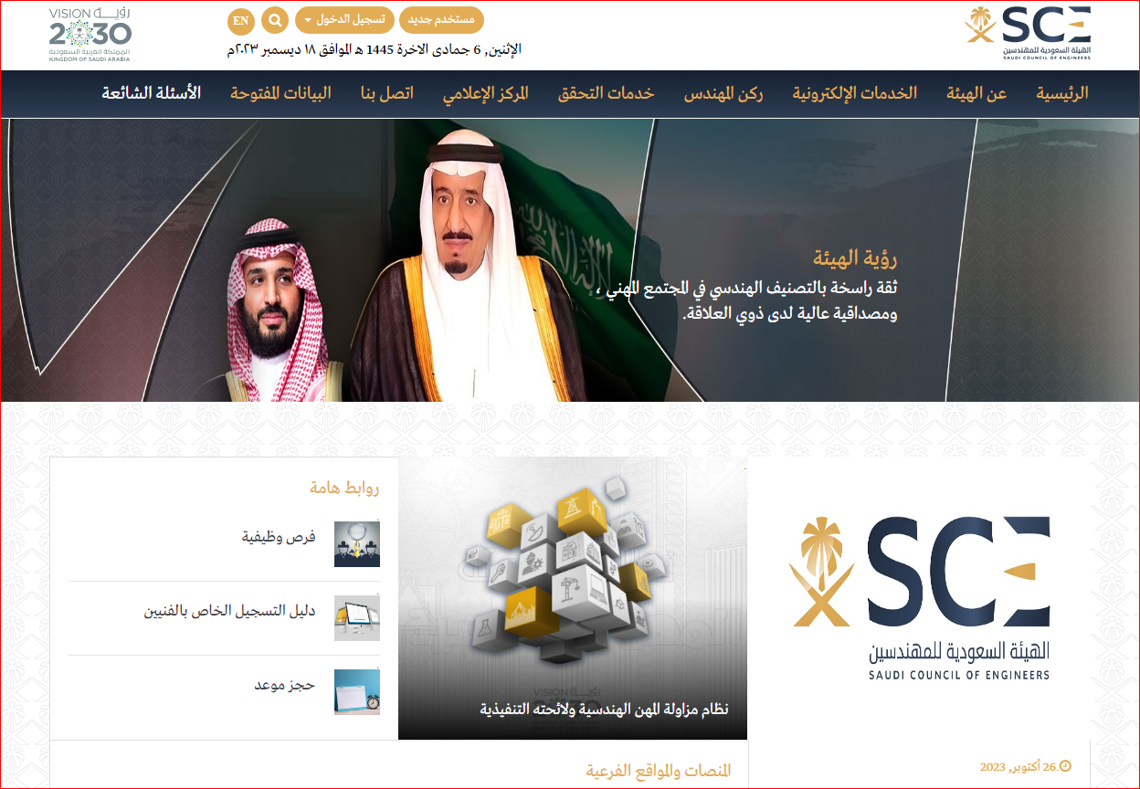 - قم بالتوجه إلى الموقع الرسمي للهيئة السعودية للمهندسين.