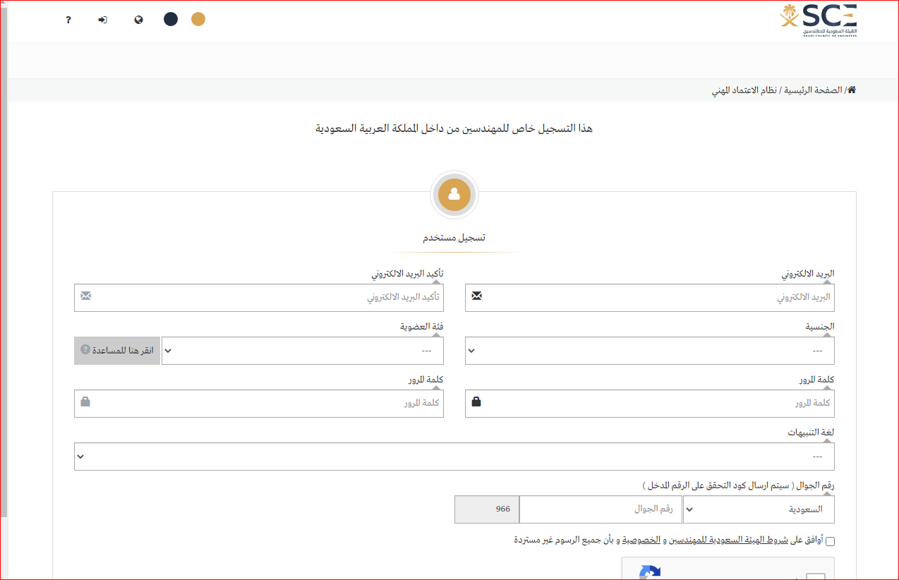 وإليك فيما يلي عرض لكافة مراحل التسجيل الإلكتروني داخل الهيئة السعودية للمهندسين: