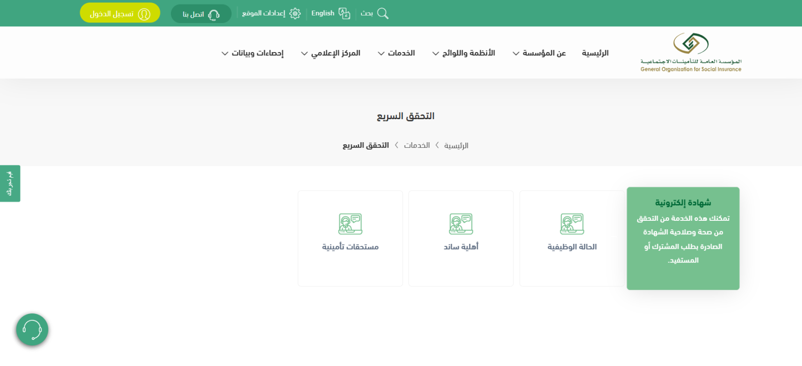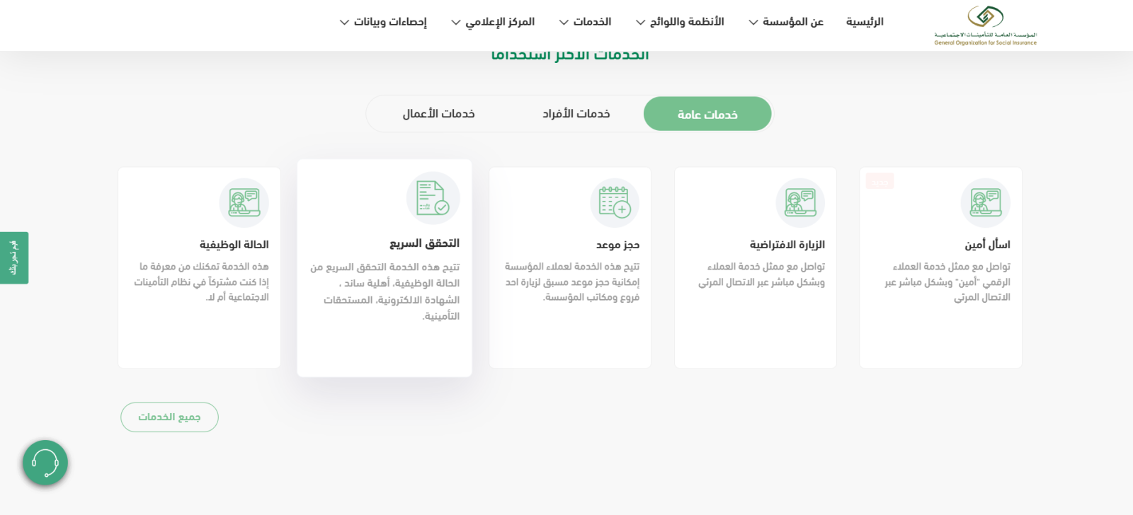 خدمات المؤسسة العامة للتأمينات الاجتماعية