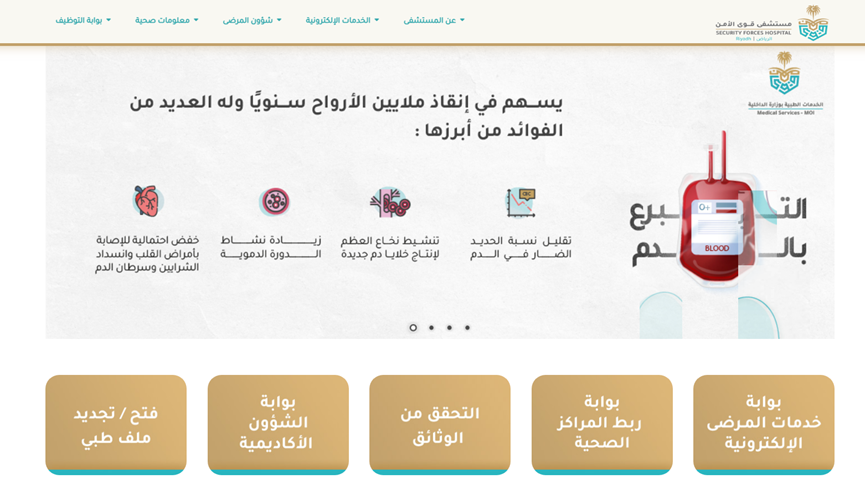 - تتمثل الخطوة الأولى في الدخول إلى المنصة الرسمية لمستشفى قوى الأمن.