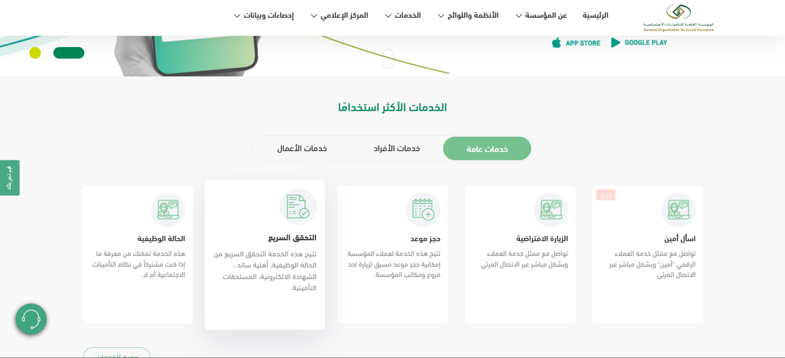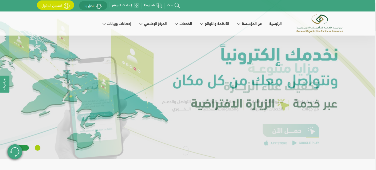 - يتم الوصول المباشر إلى الموقع الرسمي للتأمينات الاجتماعية عبر الرابط المتاح.