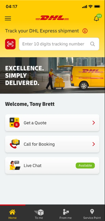 - لا بد من تحميل تطبيق DHL للأندرويد أو الآيفون.