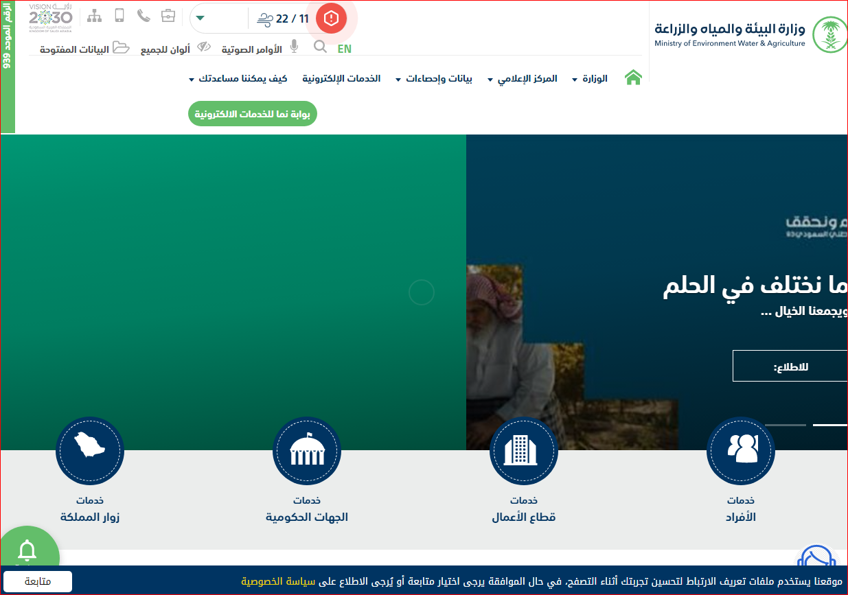 - قم بالدخول إلى الموقع الرسمي لوزارة البيئة والمياه والزراعة.