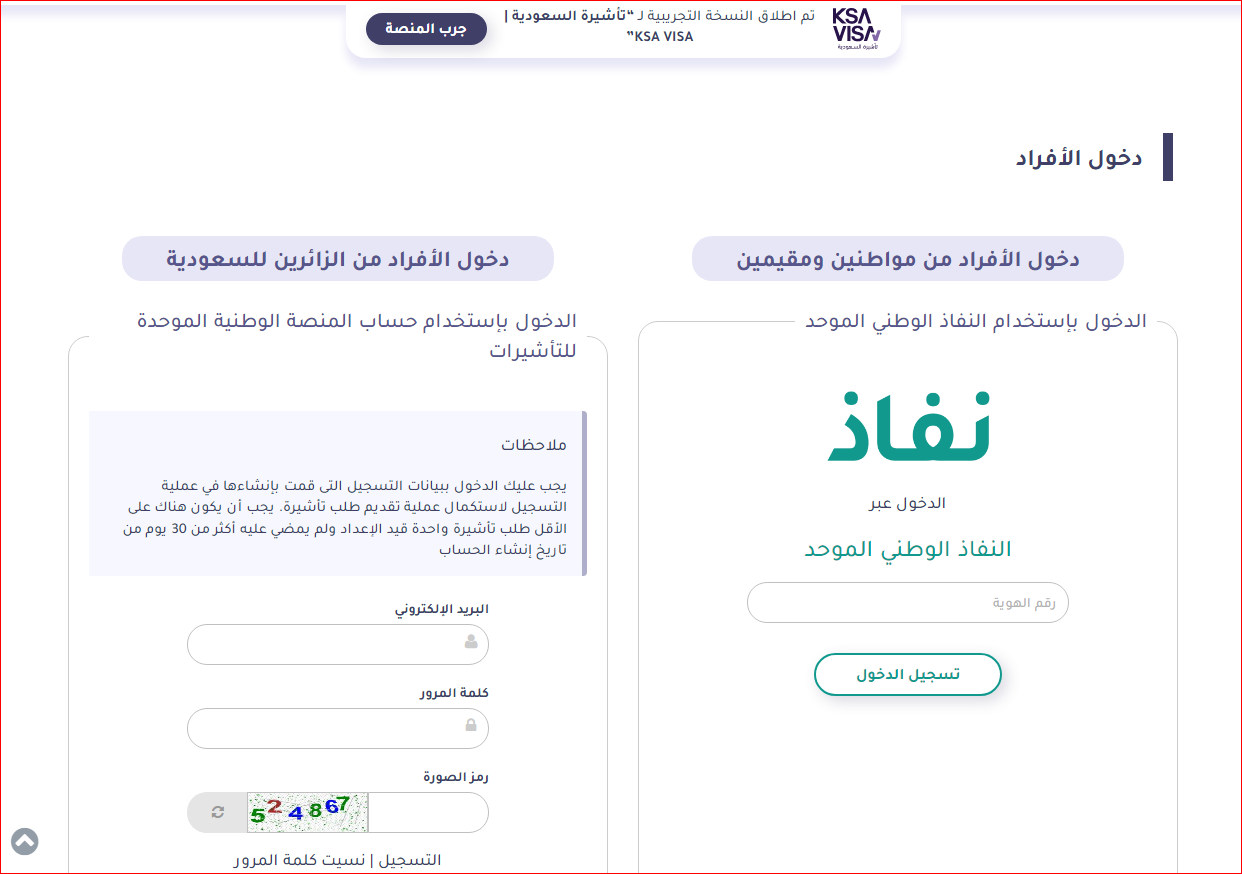 - قم بالدخول إلى منصة التأشيرات التابعة لوزارة الخارجية.