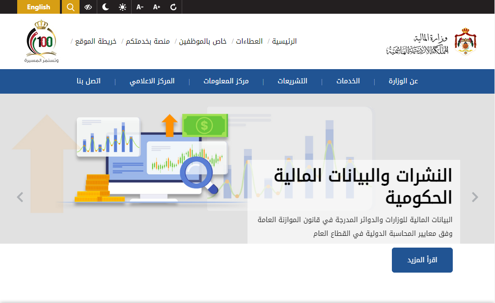 - التوجه إلى موقع وزارة المالية الأردنية.
