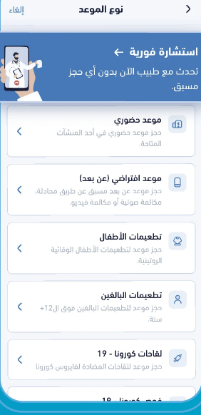 - حجز موعد لإجراء الفحص على تطبيق صحتي.