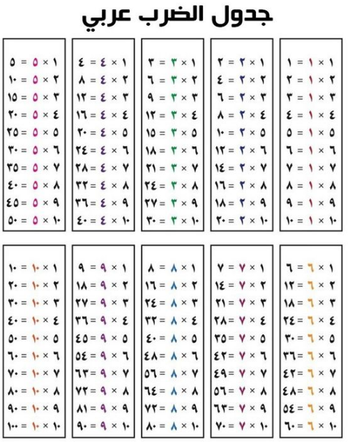 جدول الضرب كامل بالعربي بالصور