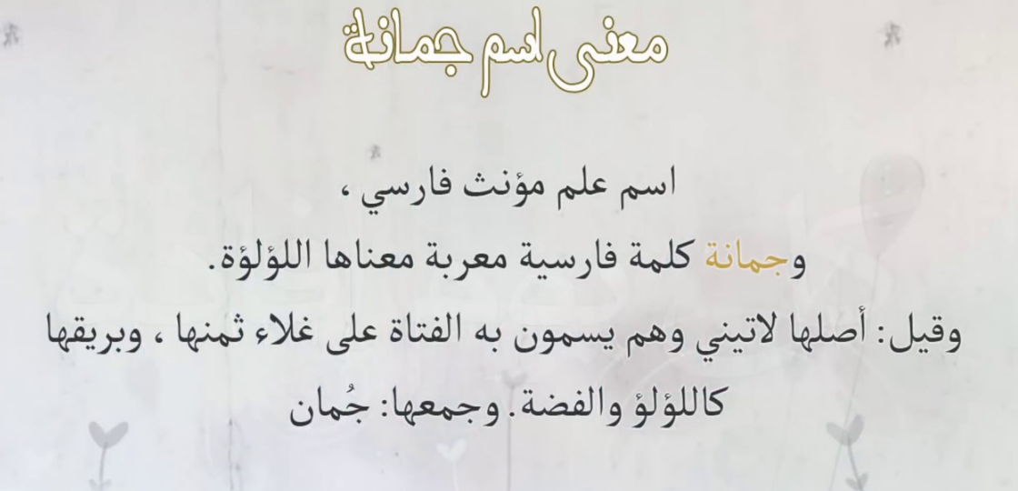 معنى اسم جمانه.. ما معنى اسم جمانه وحكم تسميته في الاسلام؟